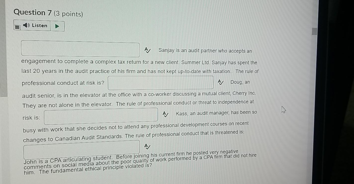 Solved Question 7 3 Points Listen A Sanjay Is An Audit Chegg Com
